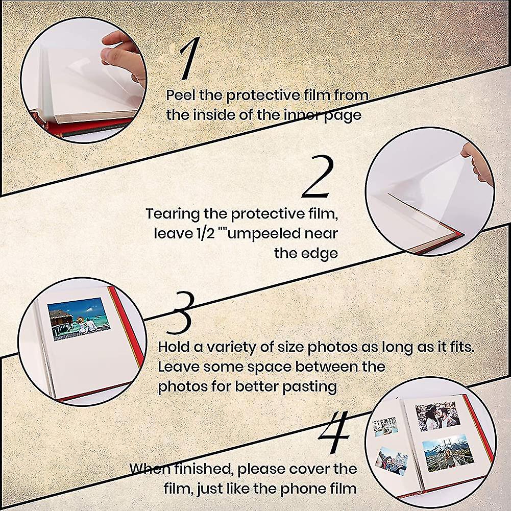 Diseño autoadhesivo: las superposiciones de plástico transparente son autoadhesivas a la página y sujetan las fotos de forma firme y clara. No se necesita pegamento adicional, más conveniente y ecológico. Adecuado para fotos de muchos tamaños, como 5 "x 3", 6 "x 4", 8" x 6" y 10" x 8". Álbum de fotos .