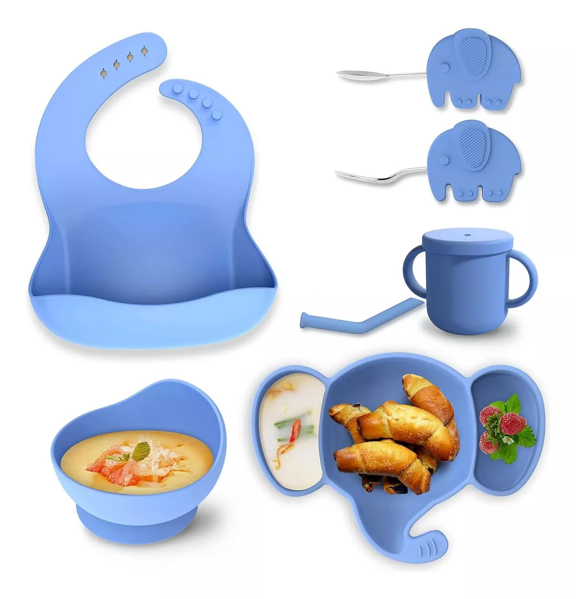 Esta vajilla de silicona es perfecta para bebés y niños pequeños que están en la etapa de aprender a comer por sí mismos.