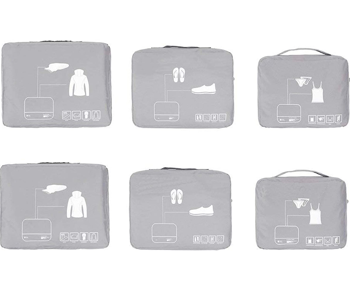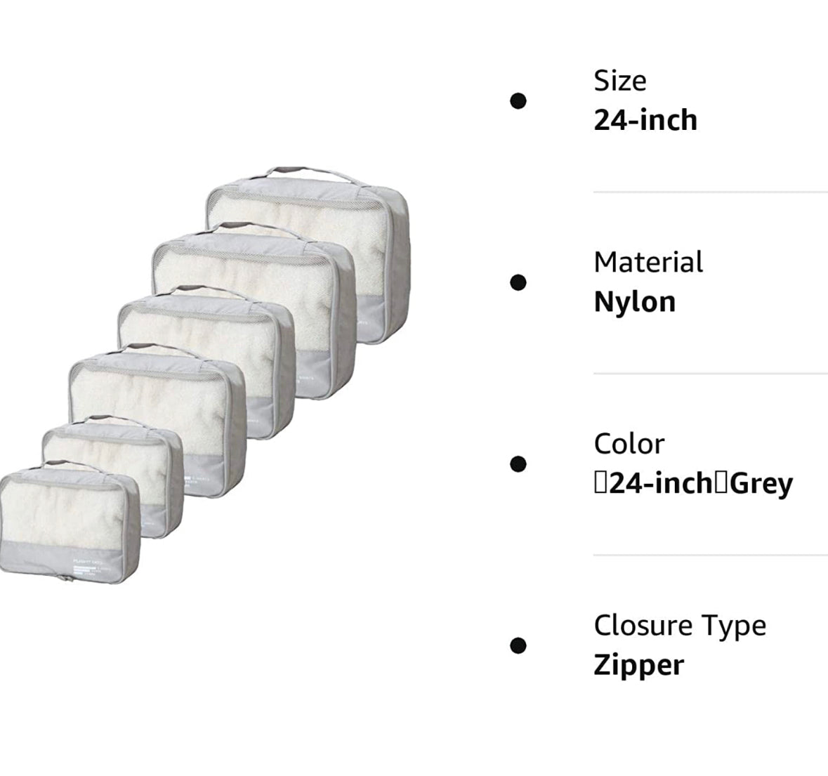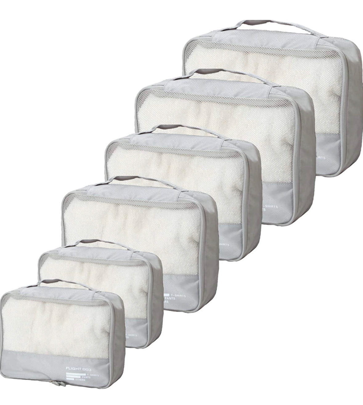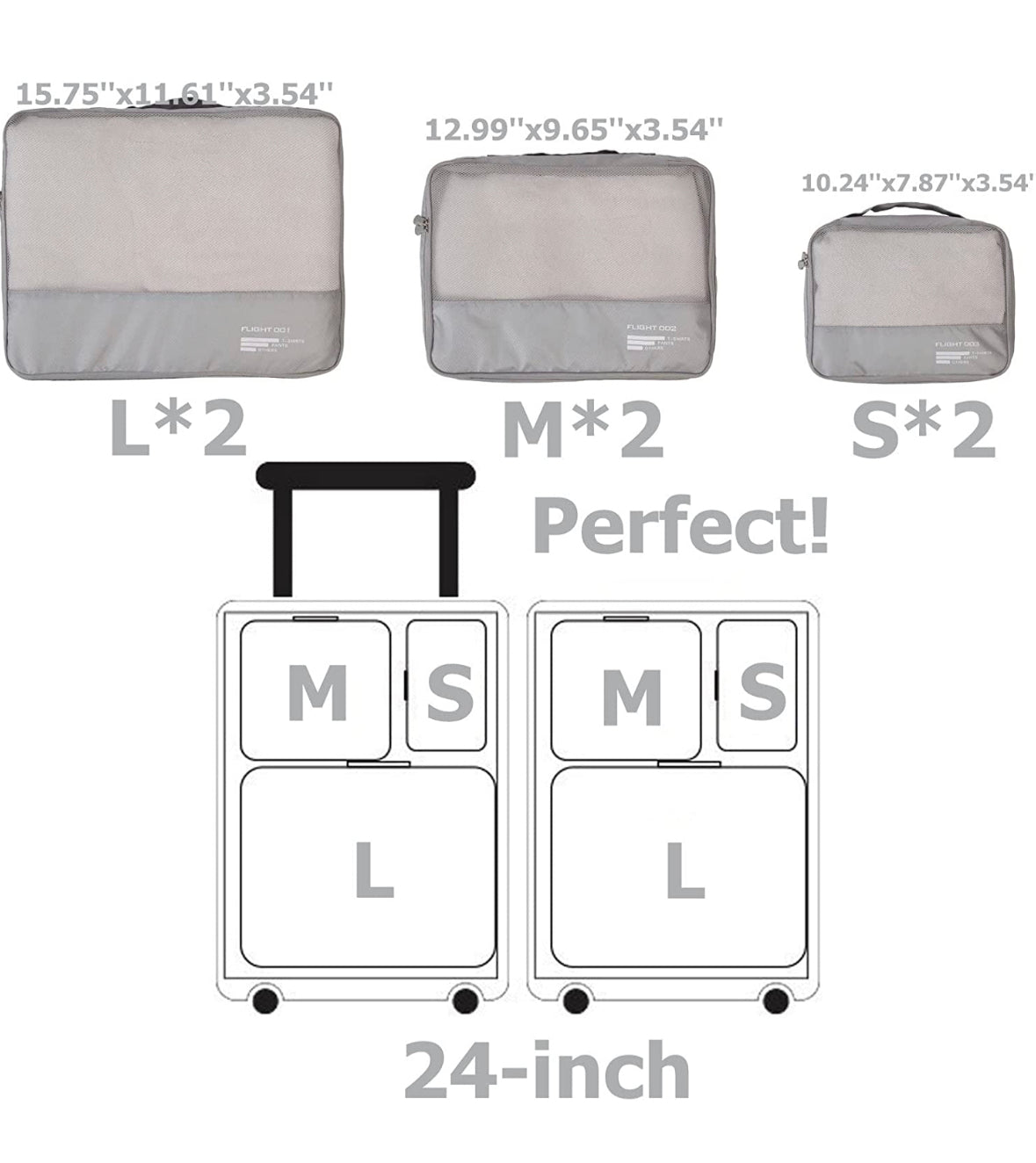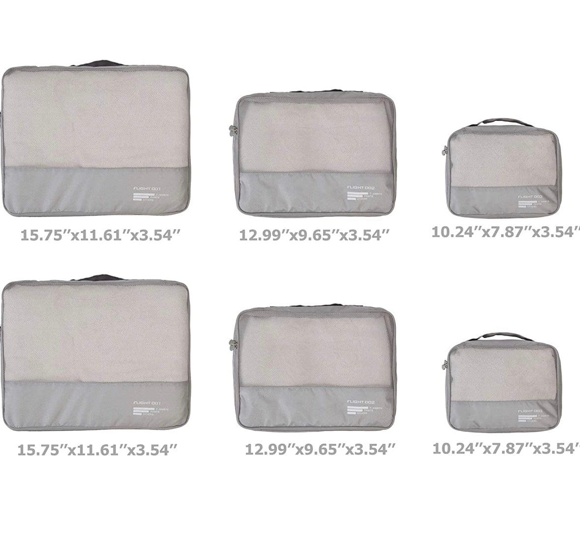 - 6 cubos de embalaje de viaje: grande (15.75 x 11.61 x 3.54 pulgadas) x 2 + mediano (12.99 x 9.65 x 3.54 pulgadas) x 2 + pequeño (10.24 x 7.87 x 3.54 pulgadas).