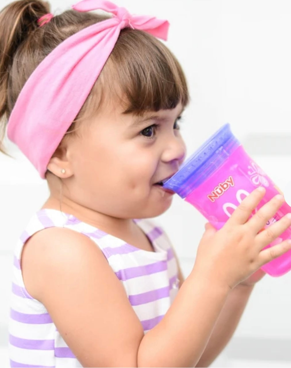 12+ meses 10oz/300ml El borde de 360° permite beber desde cualquier lugar del borde Sellos cuando el niño deja de beber Ayuda a la transición a beber en vaso abierto La tapa Touch-Flo™ permite que el niño beba desde cualquier ángulo ¡No-Spill™, sin fugas, sin ensuciar! Sin BPA