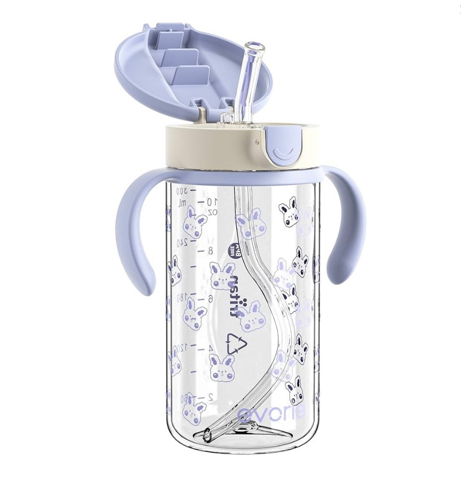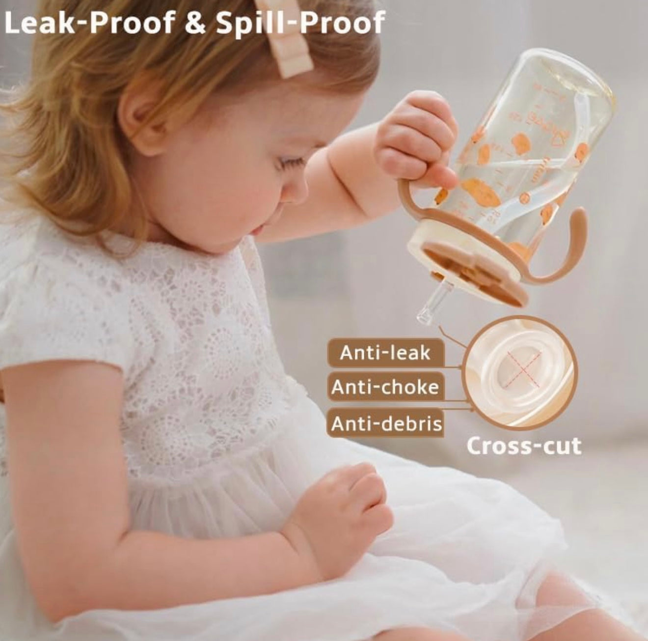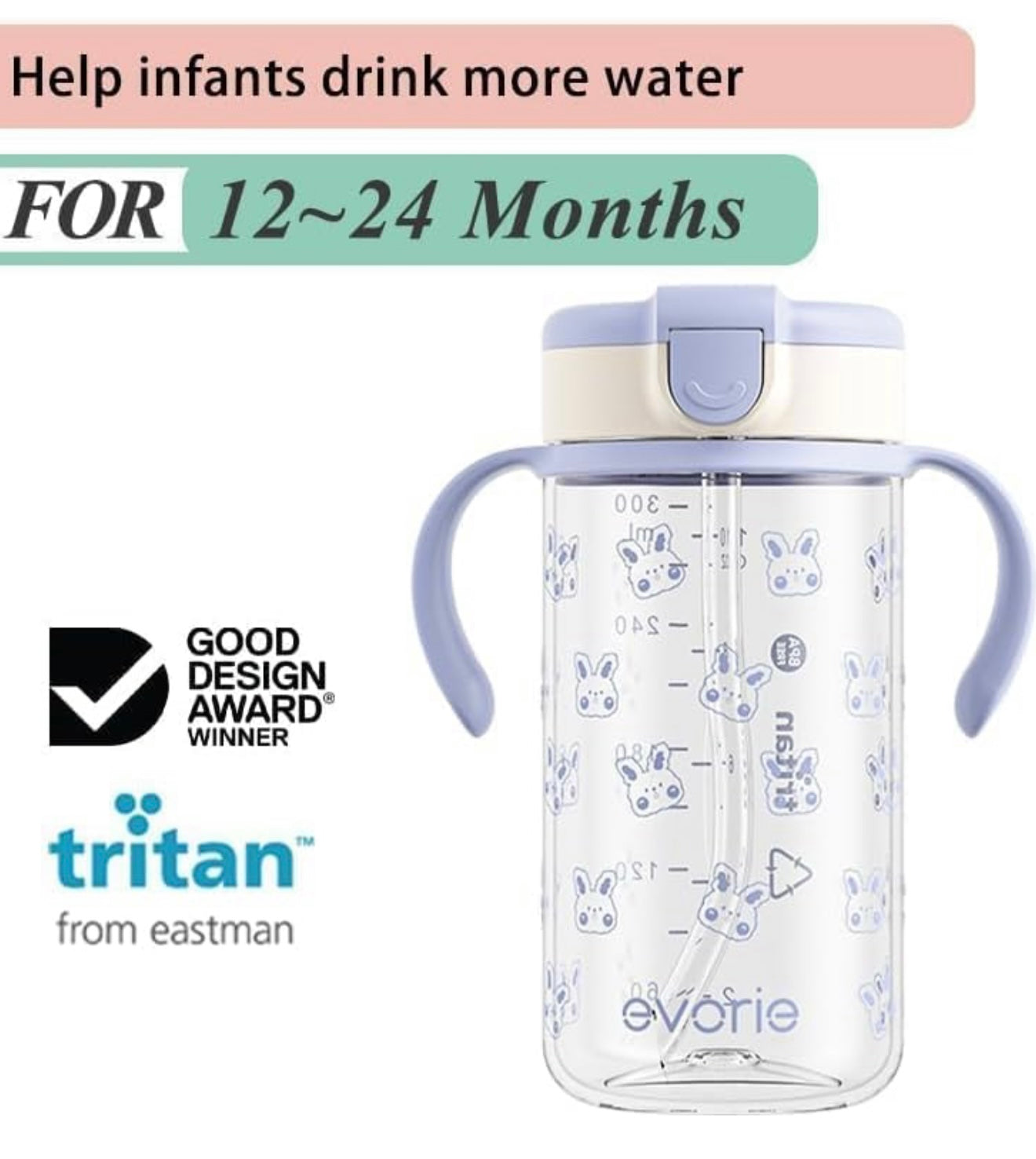 Vaso para bebé con pajita y tapa Evorie Tritan a prueba de derrames, 10 oz