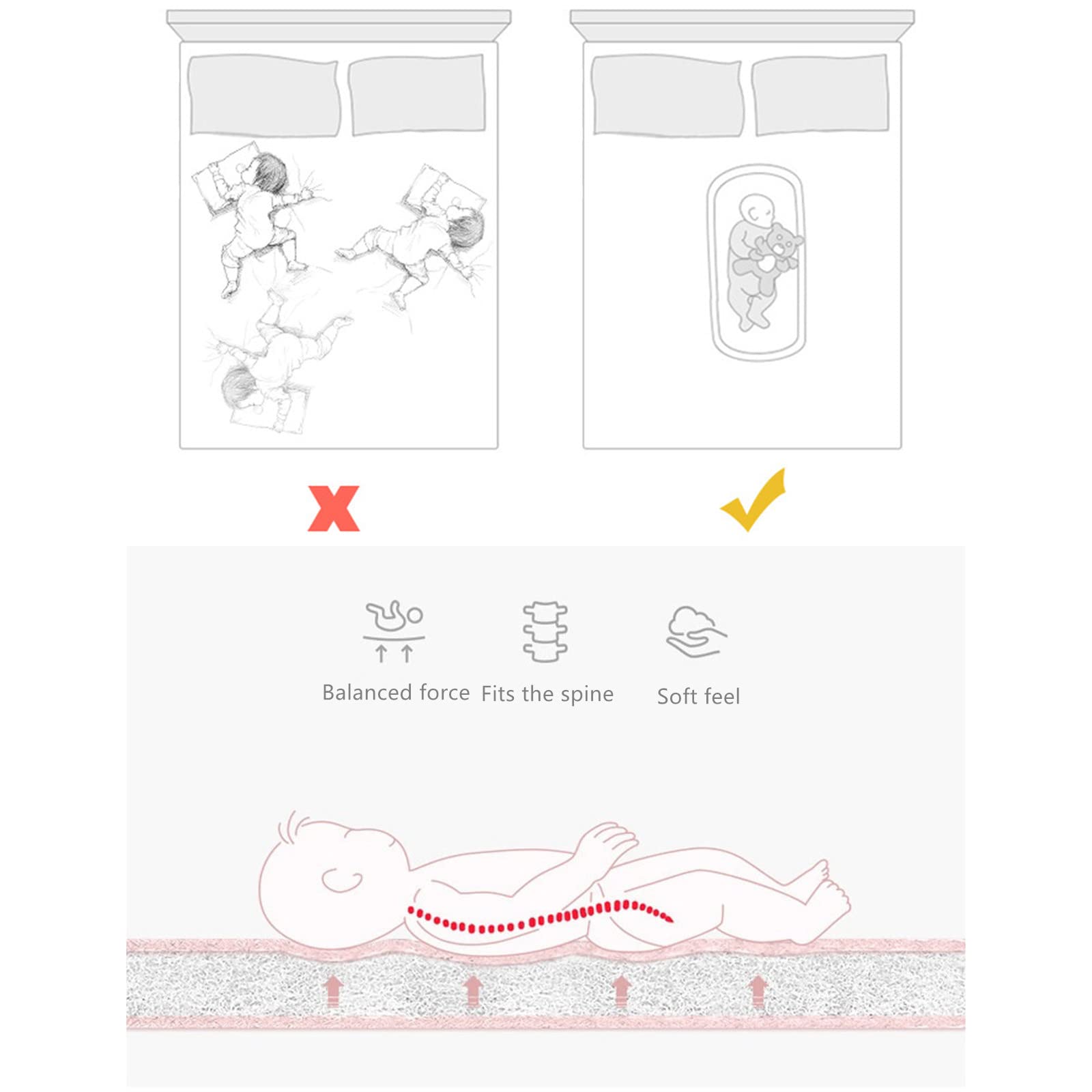 - Alarga el espacio: el tamaño de la tumbona para recién nacidos es de aproximadamente 34.6 pulgadas de largo x 21 pulgadas de ancho, alarga el espacio a 3 años de edad y pesa solo 2.65 libras, con embalaje al vacío y diseño de bolsa portátil que hace que la tumbona para recién nacido sea imprescindible para el bebé en movimiento.