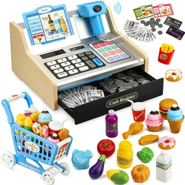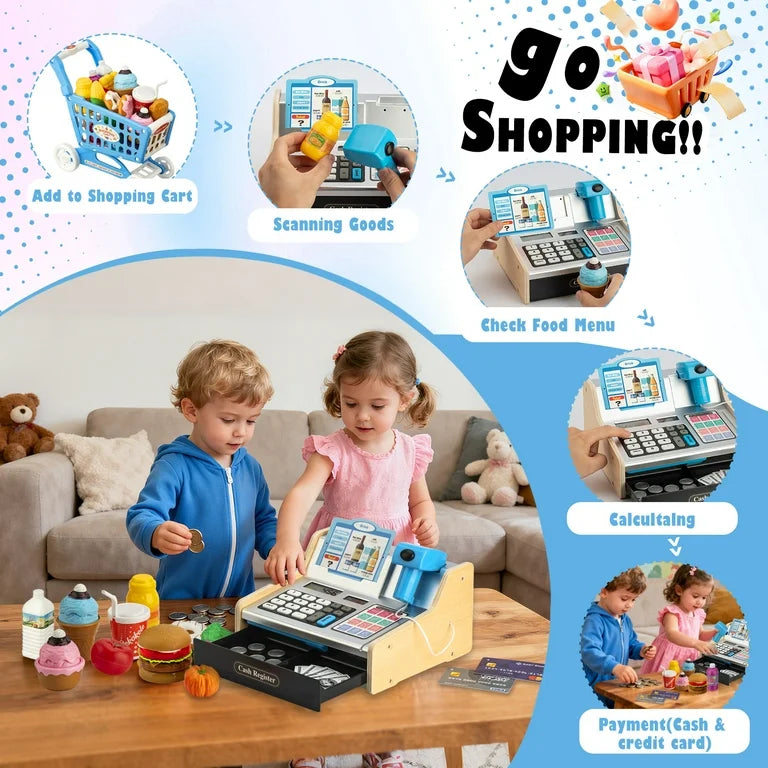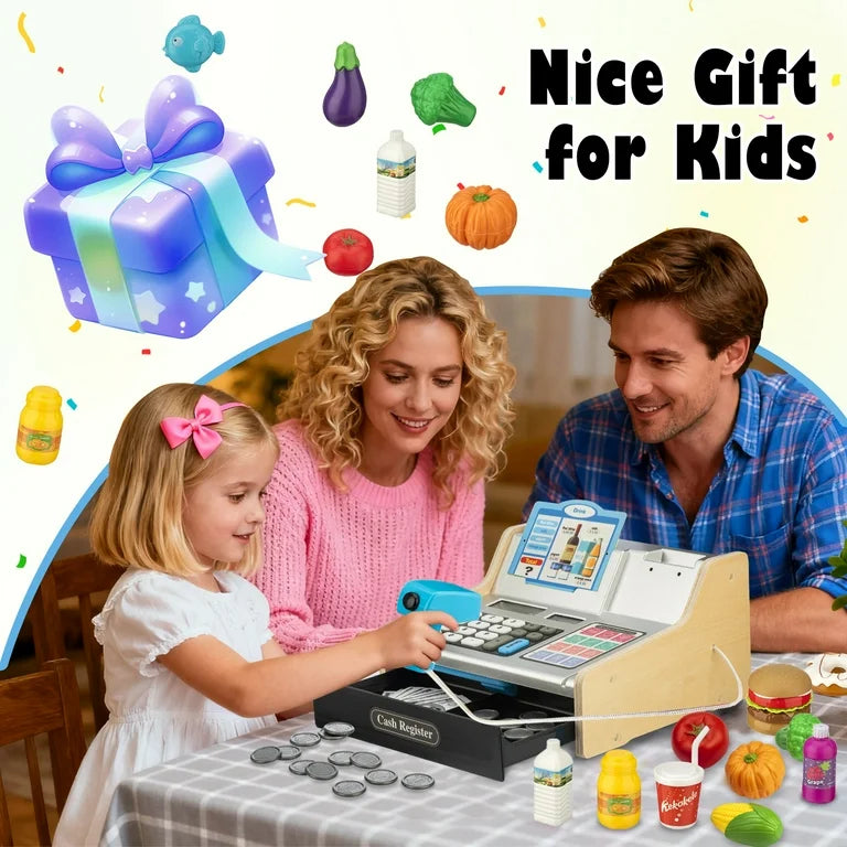 VROGTIK Caja Registradora de Juguetes de Madera con Escáner Realista para Niños