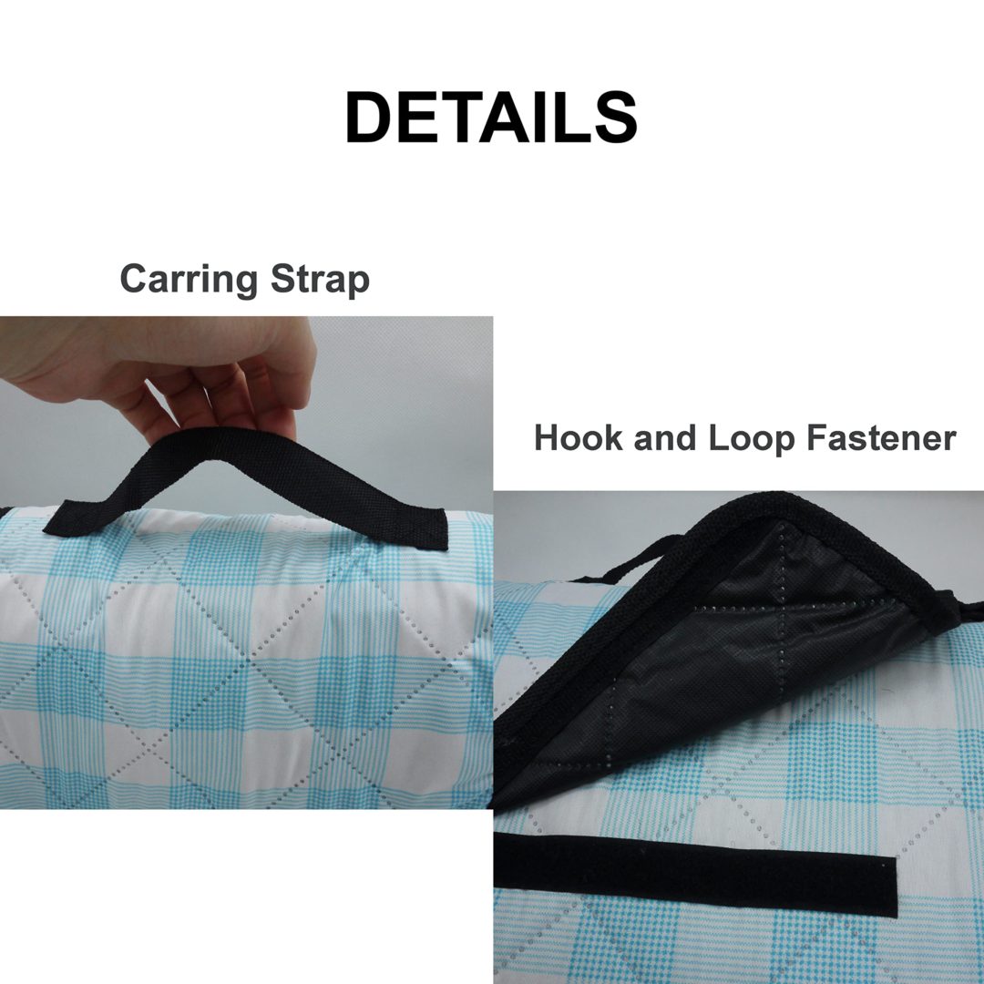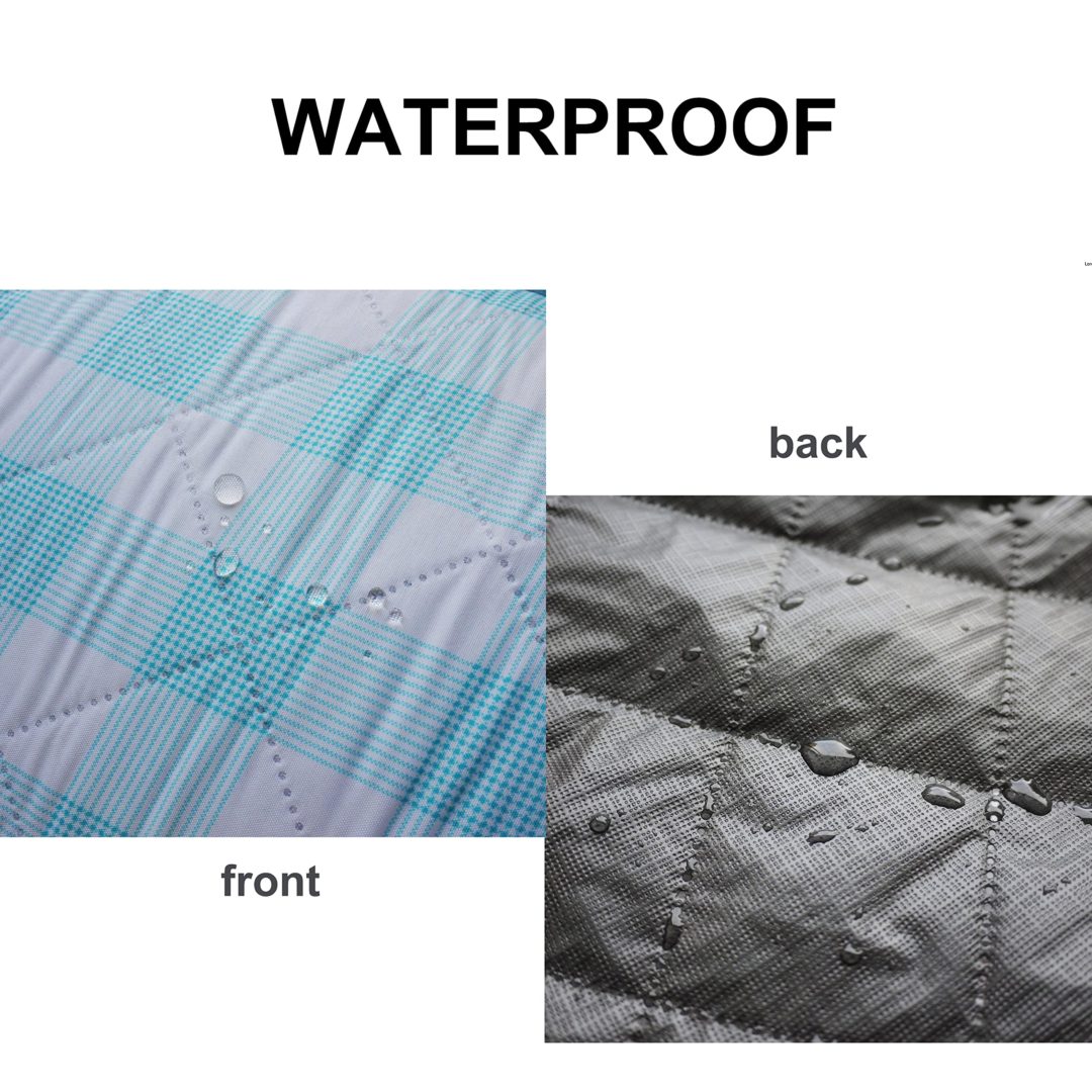 Alfombrilla de picnic está hecha de materiales resistentes y caben de 4-6 adultos y mide aproximadamente 59 x 79 pulgadas. El poliéster suave en la parte superior, el contenido en el medio proporciona un tacto suave y cómodo y el duradero respaldo de PEVA hace que la manta sea impermeable y resistente a la arena. Ideal para sentarse o acostarse en césped, playa, suelo, etc. Fácil de cuidar: la manta de picnic es fácil de cuidar, puedes agitar o limpiar la suciedad. Para manchas severas, puedes simplemente ponerlo en la lavadora. Plegable y ligera: la manta de picnic XL se puede plegar a un tamaño portátil. Se puede plegar con sencillos pasos, luego guardarlo en cualquier lugar. No se suelta fácilmente ni ocupa demasiado espacio.