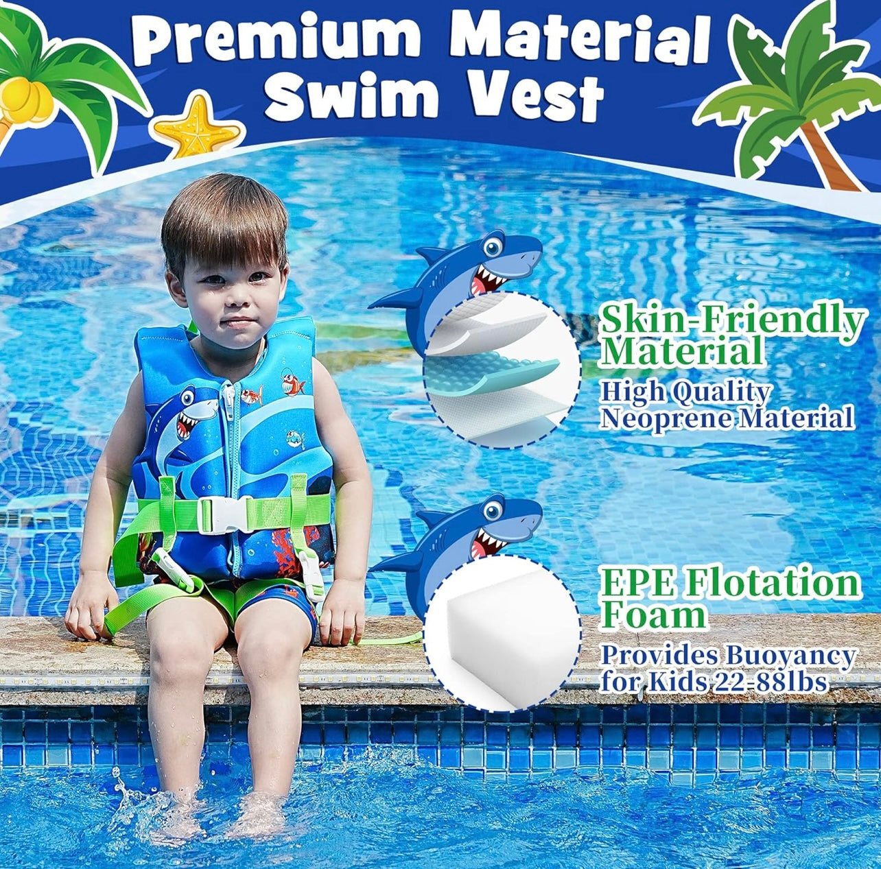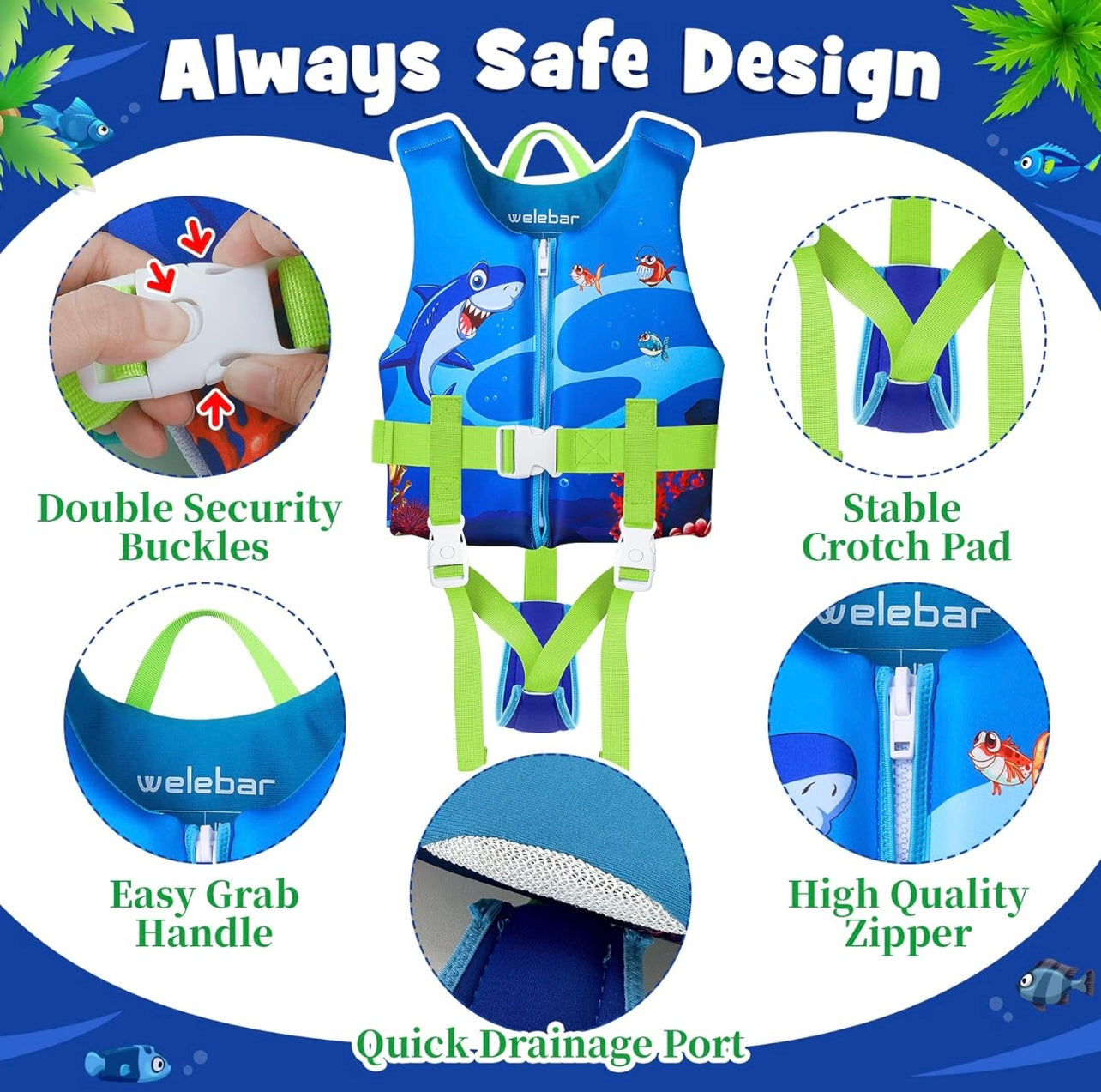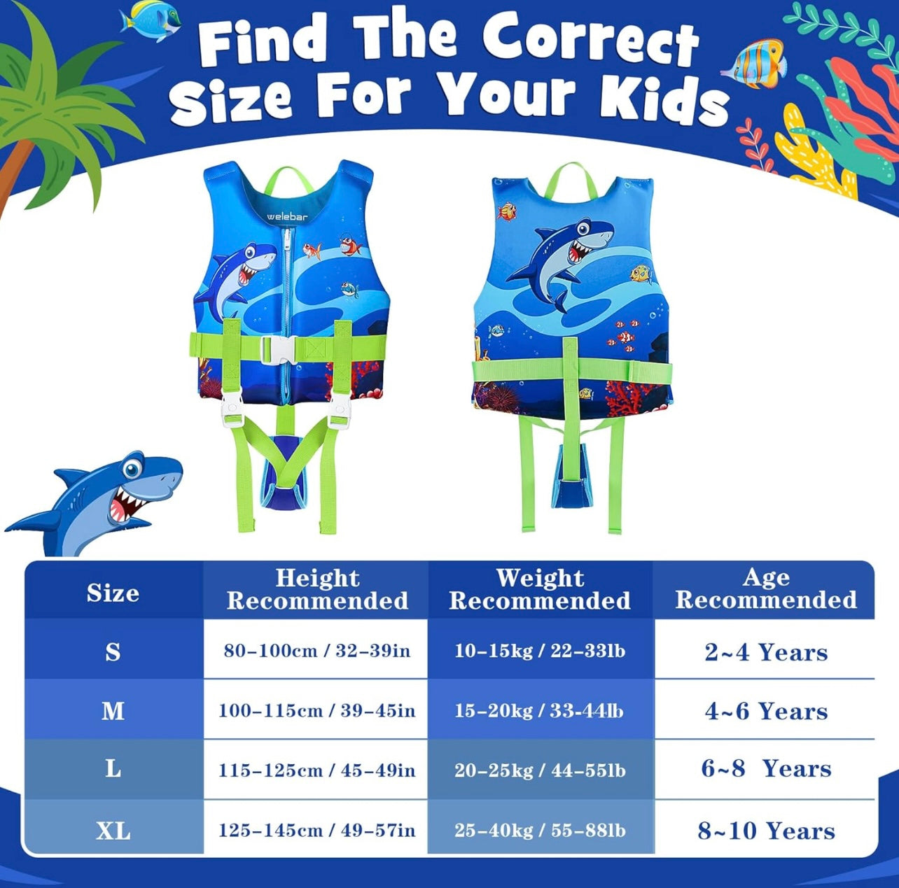 Welebar Chaleco de natación para niños pequeños 2-4 años