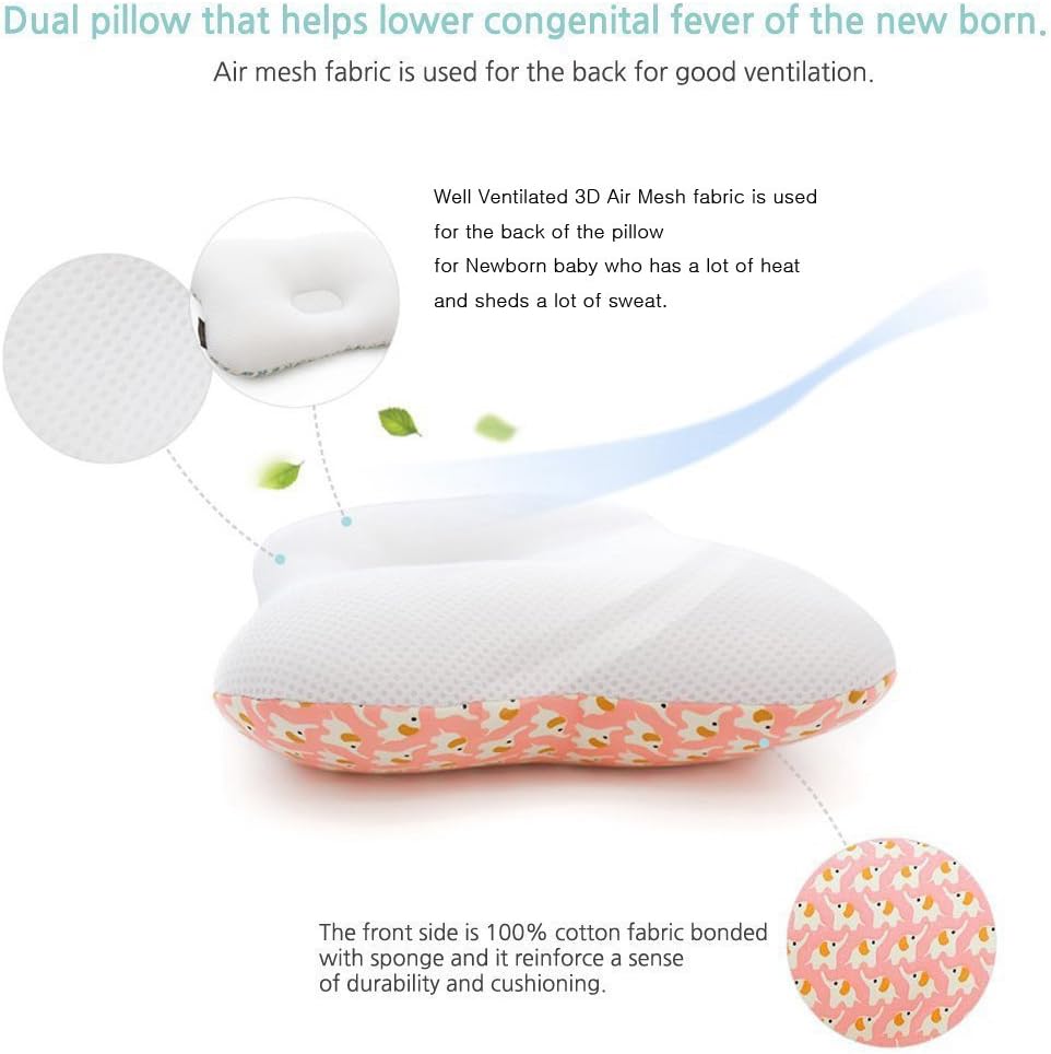 Bonita almohada para bebé con centro cóncavo para la prevención de la cabeza plana y relleno de malla de aire 3D 100 % hipoalergénico.