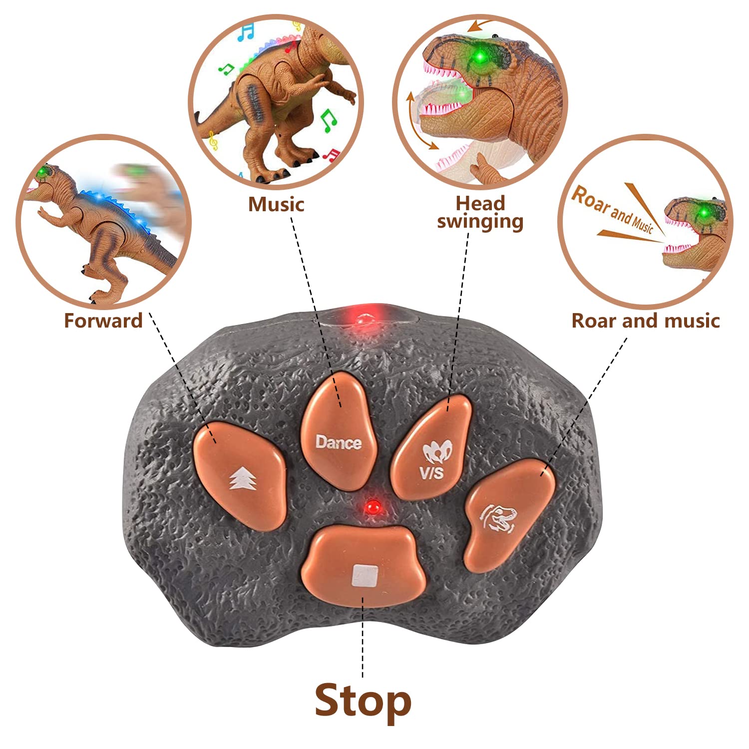 WISHTIME Dinosaurio de Control Remoto Electric Mando a Distancia T-Rex