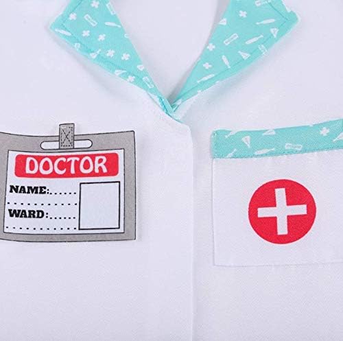 [Disfraz de Doctor Role Play]: este es un buen conjunto para que los niños se disfracen. La función de etiqueta con el nombre hizo que los niños se sintieran como un verdadero médico. Estetoscopio liviano y un enorme bolsillo transparente para guardar más herramientas. Estilos de liberación de velcro que son fáciles de poner y quitar. .Ropa Herramientas médicas fáciles de limpiar y lavables a máquina.