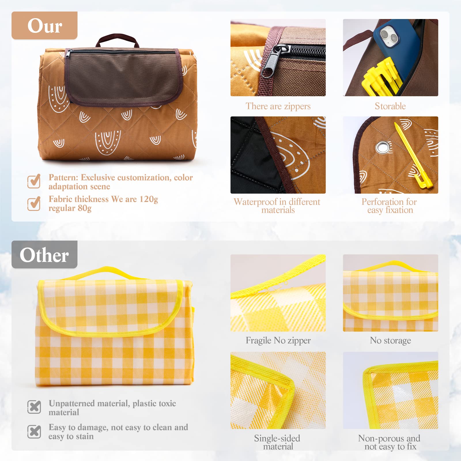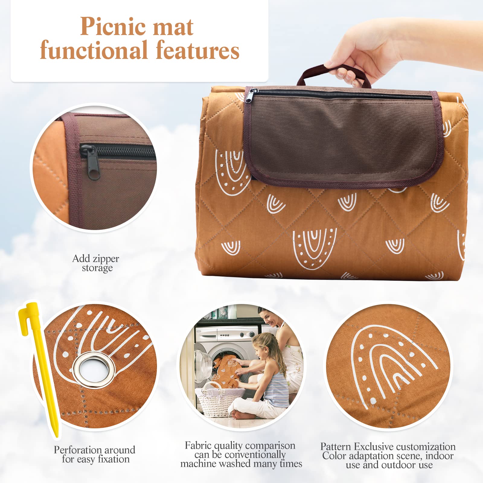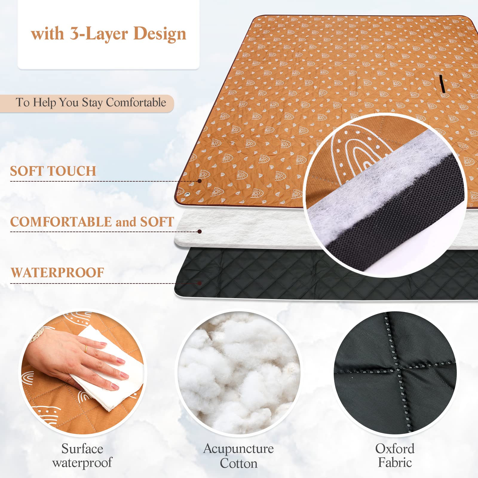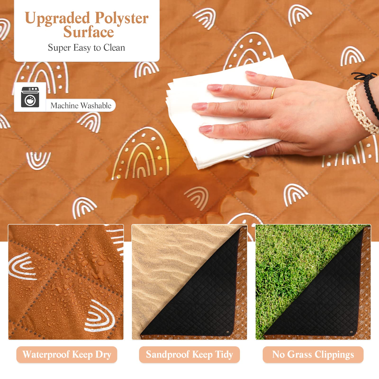 WOODEN TEETHER Manta de picnic extragrande de 79 x 79 pulgadas