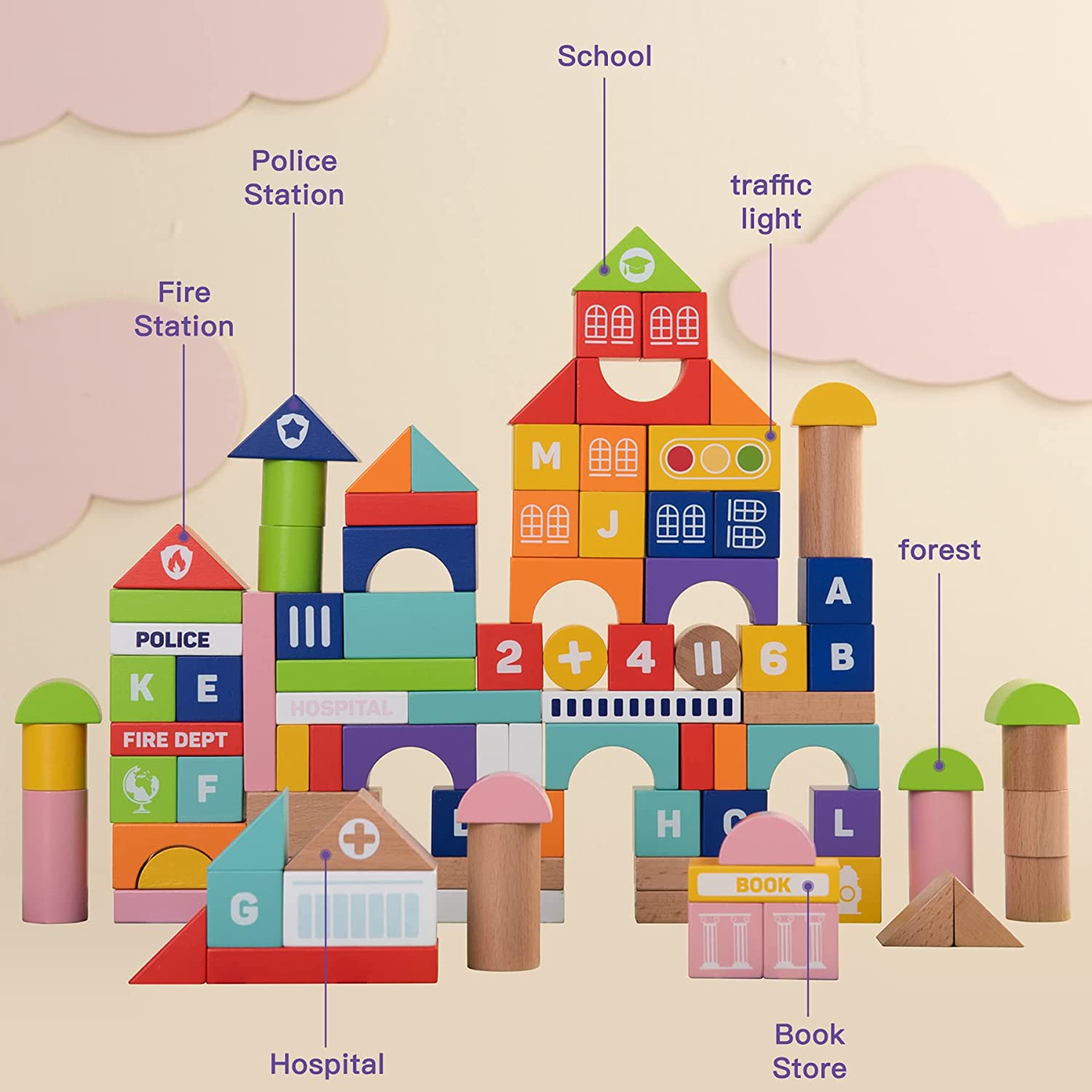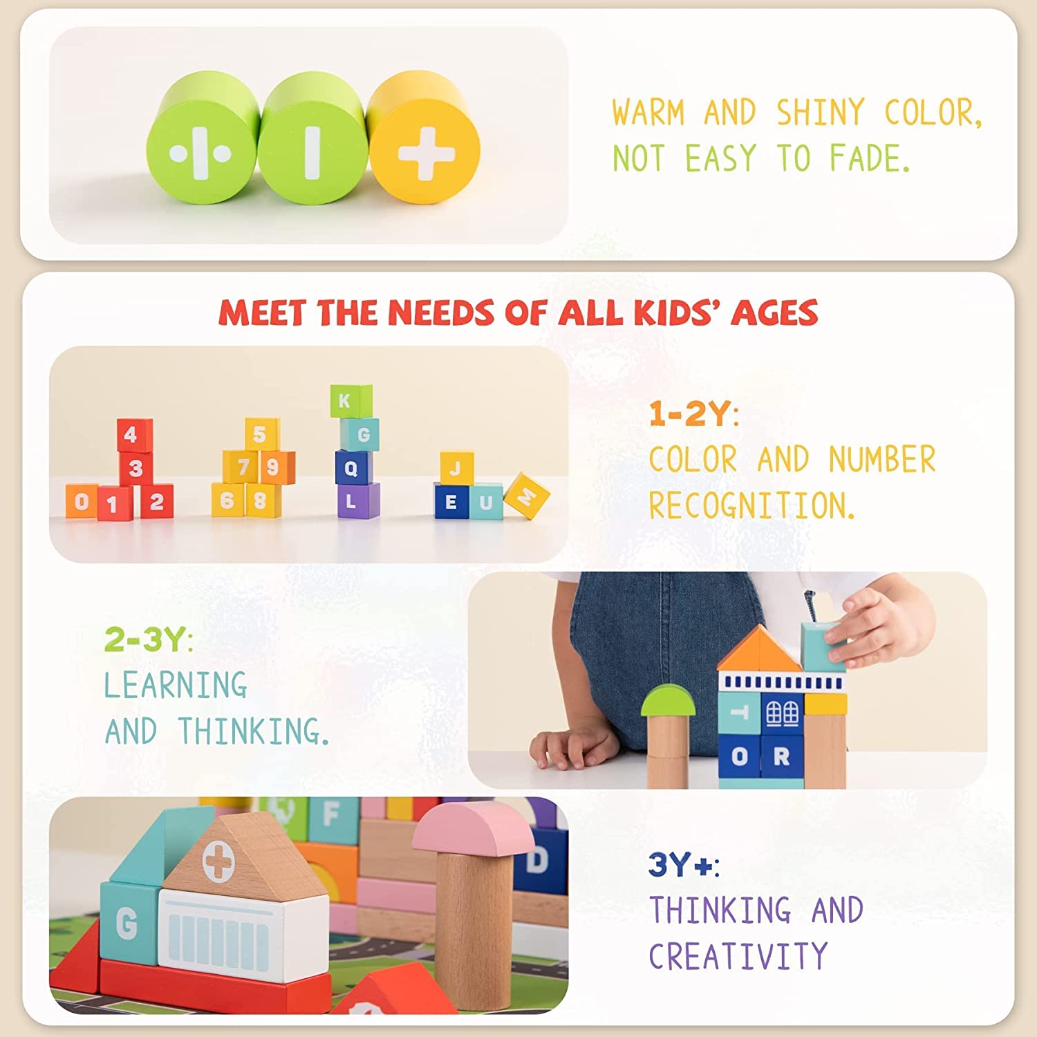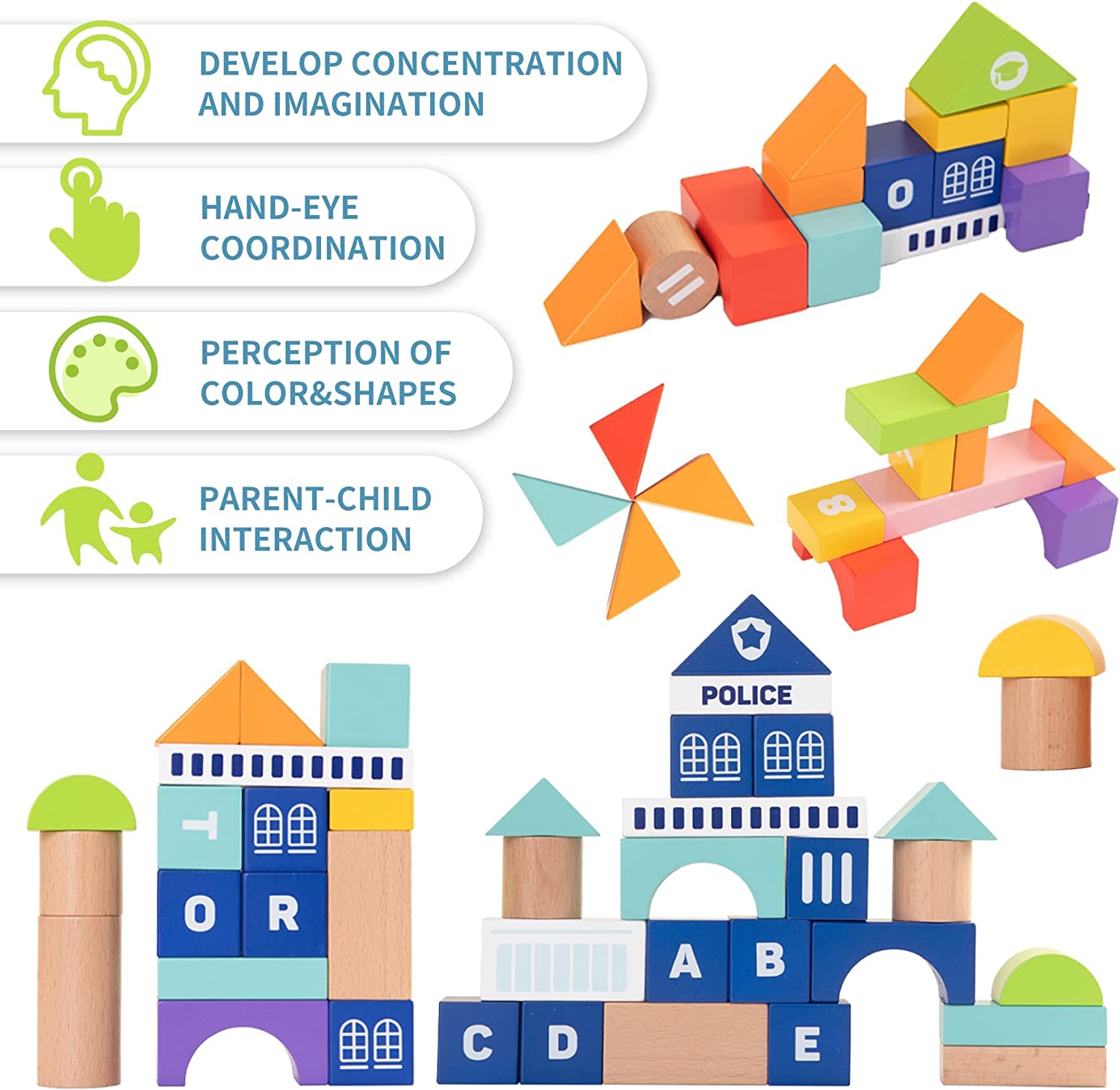Seguro y natural: estos bloques de construcción para niños pequeños están hechos de madera natural y duradera, que están pintados con pintura a base de agua. Las pinturas no son tóxicas, no tienen olor y son 100 % seguras para los niños. Además, estos bloques de la ciudad tienen bordes redondeados y una superficie lisa sin rebabas, así que no se preocupe cuando los niños busquen o jueguen.