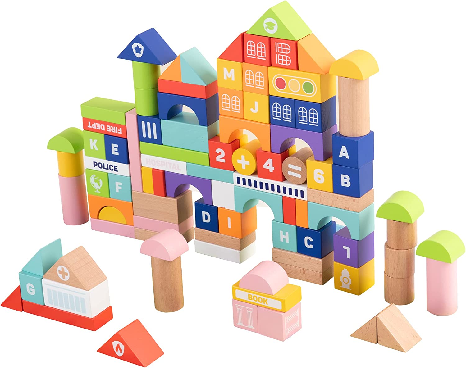 *Sin su empaque original*.Juegos de construcción de ciudades: los bloques de ciudad de madera con 100 piezas incluyen 1 caja de almacenamiento (no hay mapa), muchos bloques de números, bloques de letras y diferentes formas de bloques de construcción. Puede encontrar hospitales, escuelas, comisarías, comisarías, semáforos de bomberos, etc. Los niños aprenderán mucho sobre las diversas instalaciones de la ciudad.