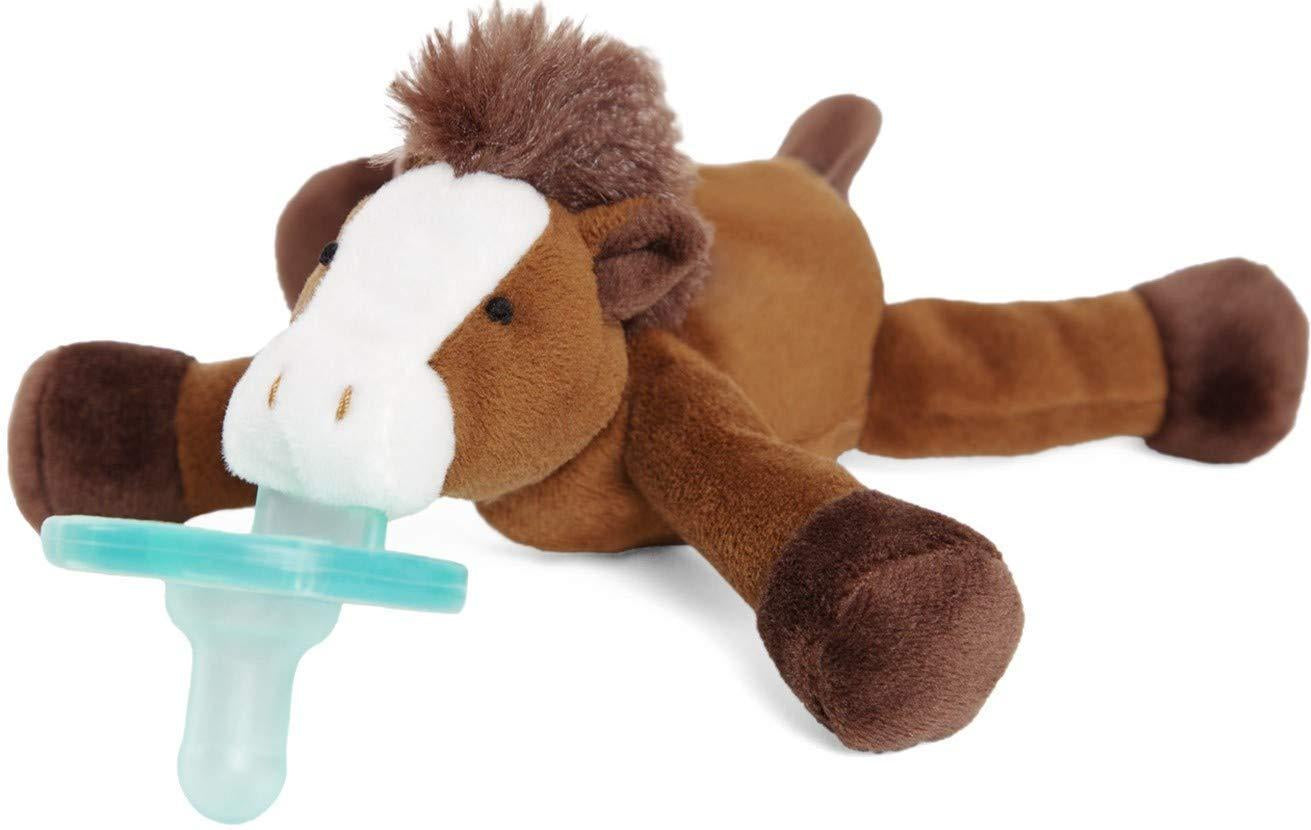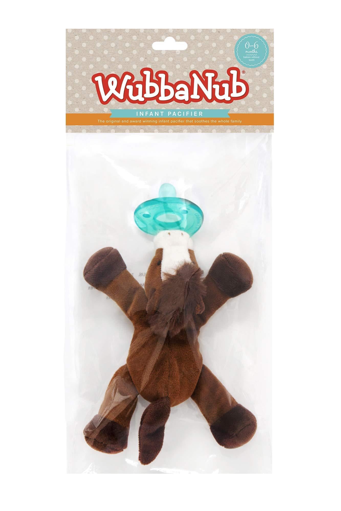 De vuelta en la granja vive un pequeño caballo marrón que amamos. Es cálido, inteligente y enérgico. Fabricado con patas pequeñas, por lo que los más pequeños pueden agarrar fácilmente, este animal bebé será de hecho un ganador de cinta azul en los ojos de todos. El estilo único del chupete WubbaNub le permite permanecer cerca y ser fácilmente colocado por su bebé. El caballo mide aproximadamente 6 x 5 x 2 pulgadas.