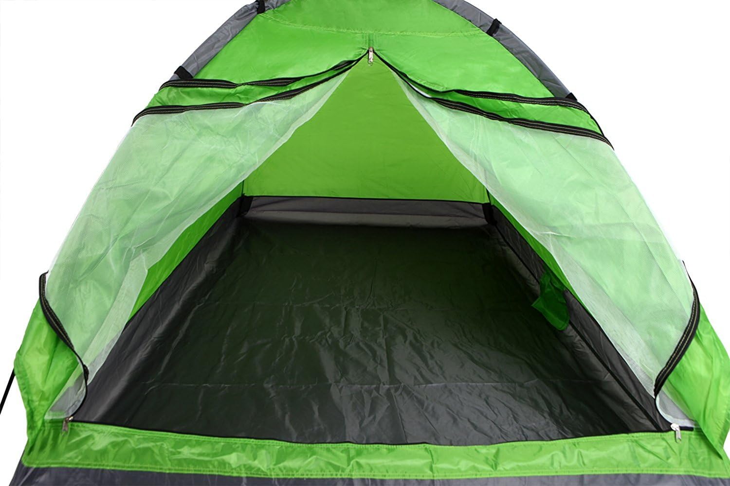 Puerta frontal de fácil entrada con ventana de malla con cremallera bidireccional. Las rejillas de ventilación laterales de malla grandes en la parte superior brindan una excelente ventilación y observación de estrellas, y mantienen alejados a los mosquitos y los insectos.