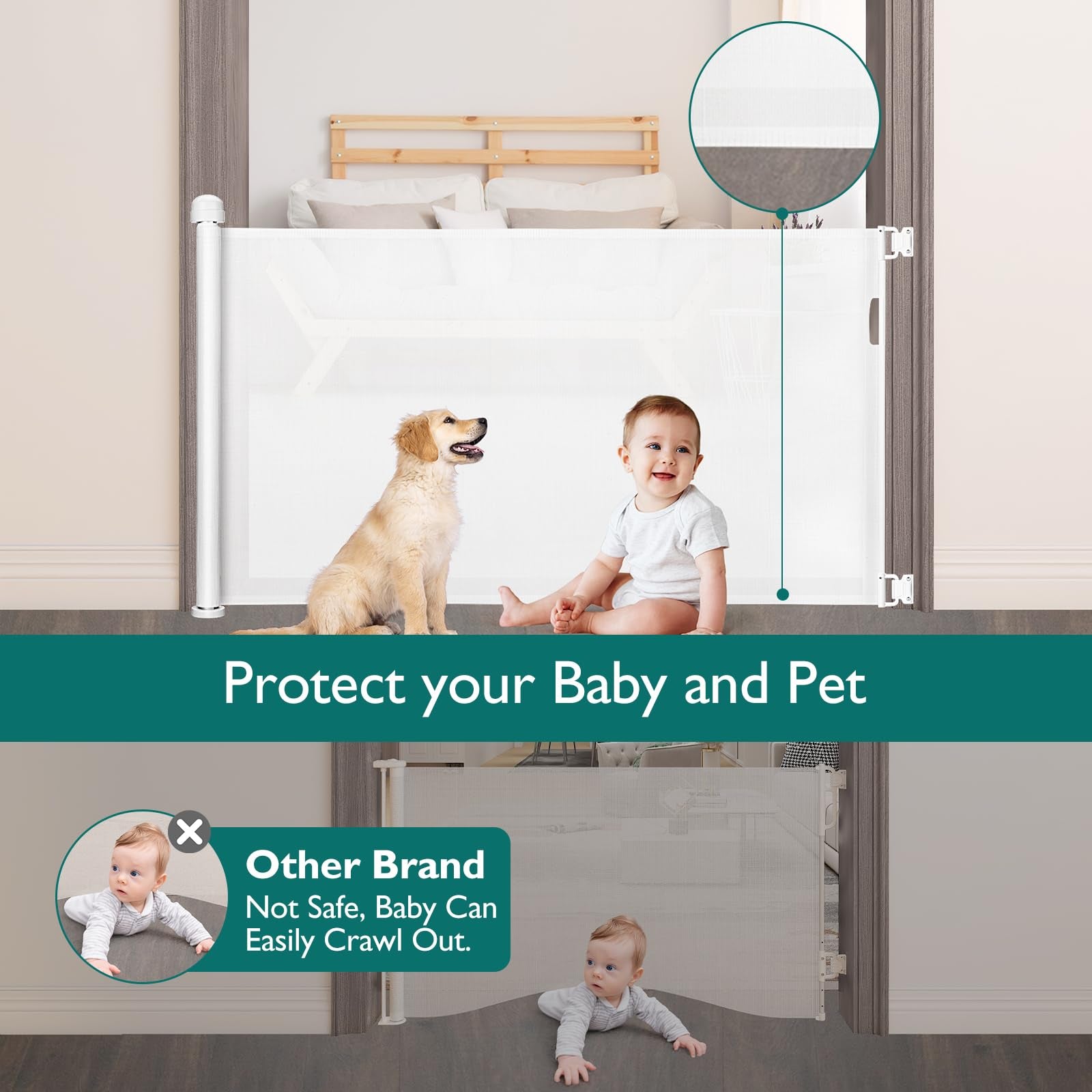 YOOFOR - Puerta retráctil para bebé, puerta extra ancha de seguridad para niños o mascotas, 33 pulgadas de alto, se extiende a 55 pulgadas de ancho