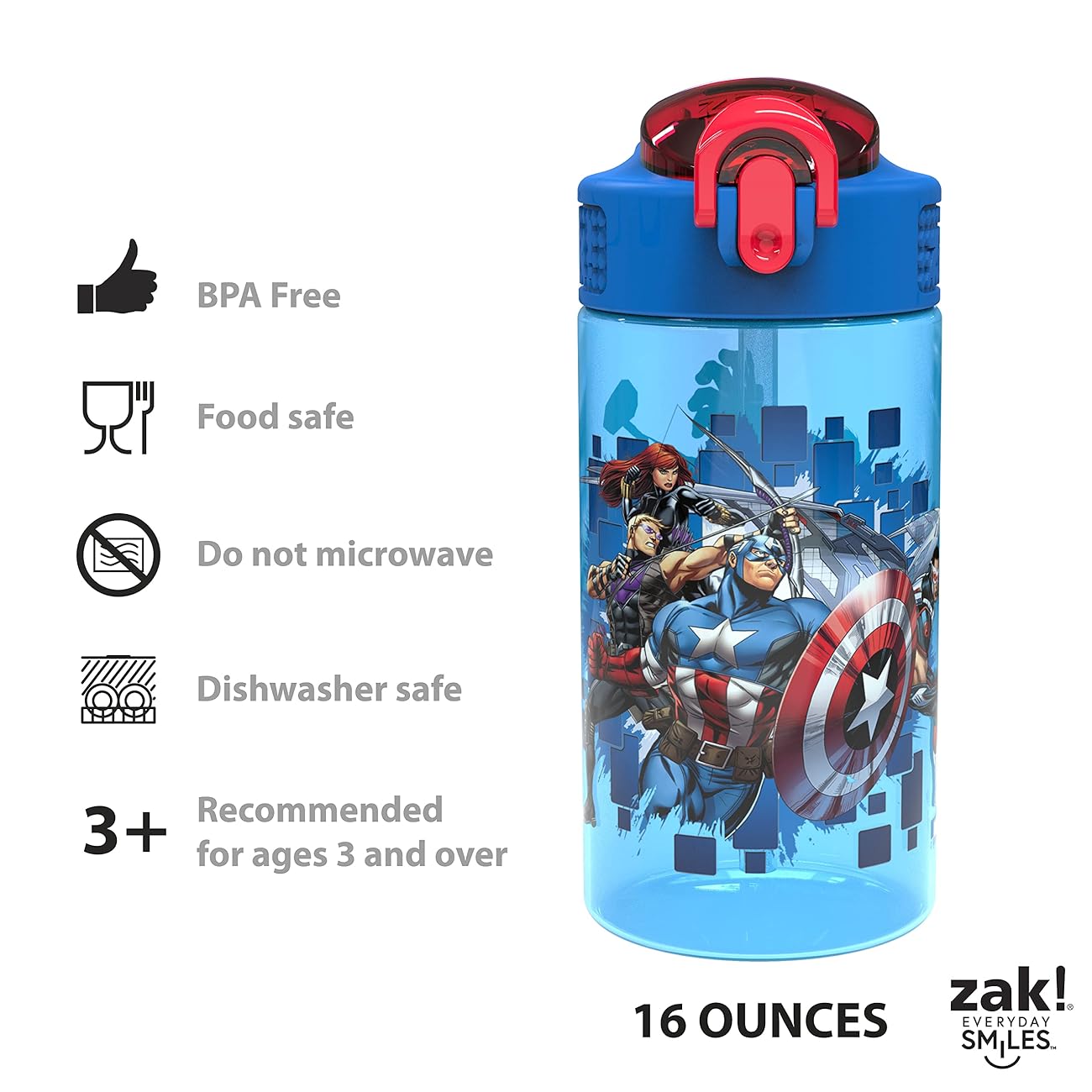 Zak Designs Marvel Cubierta de plástico duradera para boquilla para niños
