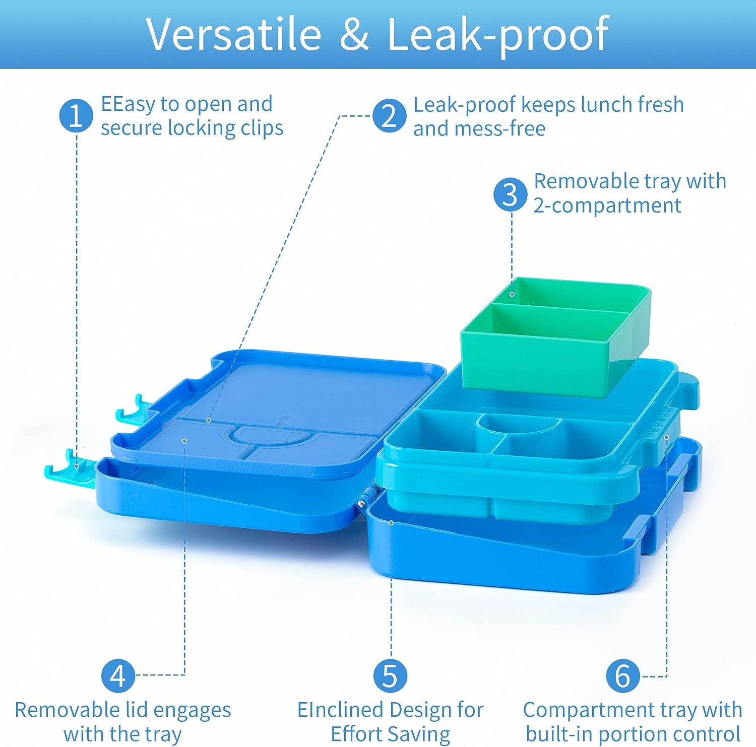 Fácil de limpiar: la lonchera infantil Zazozea dinosaurio azul con 6 compartimentos se puede limpiar de forma fácil e higiénica gracias a su diseño modular. Las 2 bandejas interiores se pueden quitar y limpiar fácilmente en el lavavajillas.
