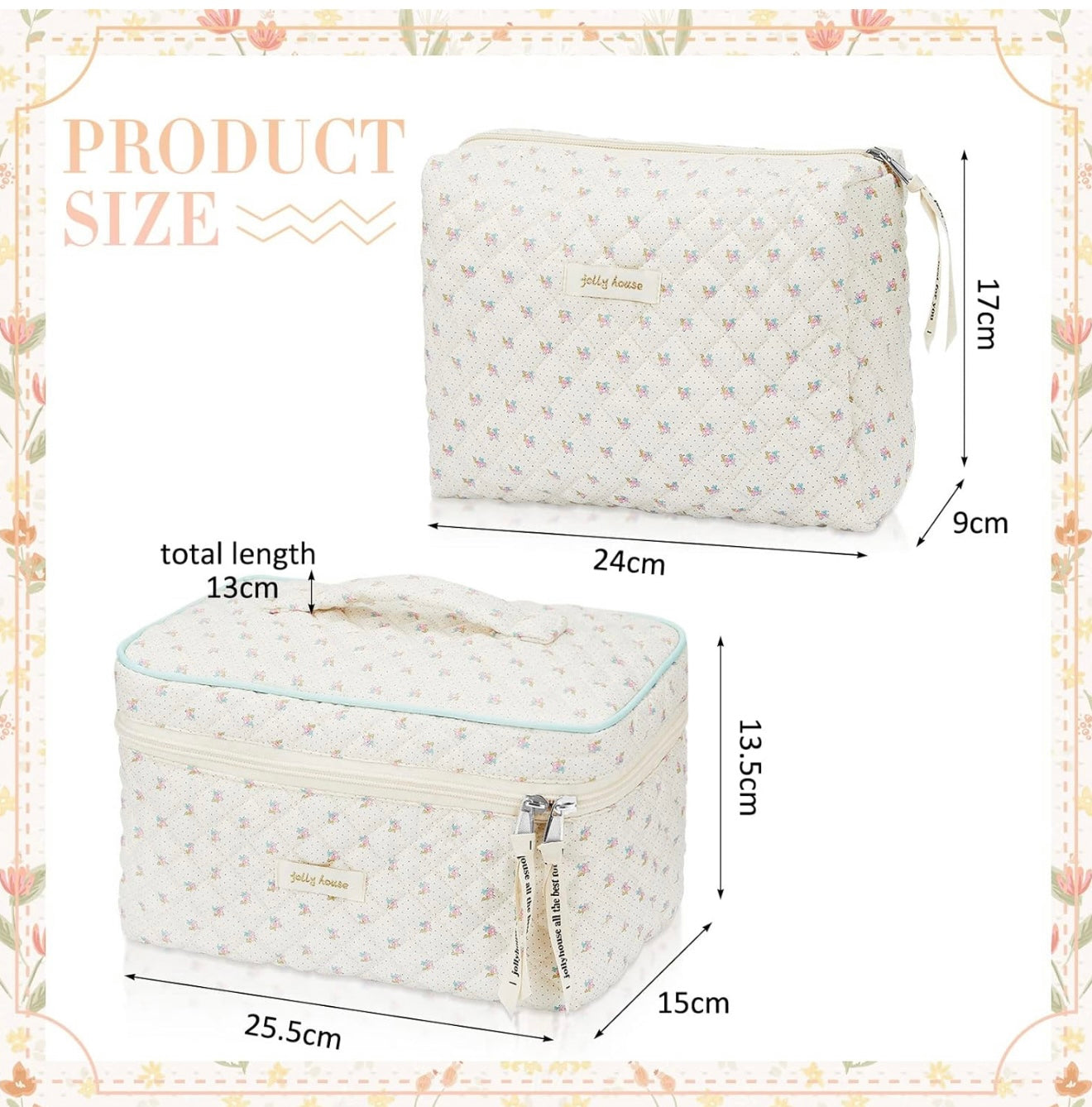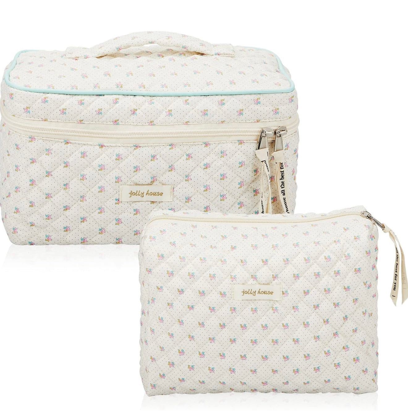 Zeyune - Neceser de maquillaje acolchado de algodón para mujer (2 unidades)